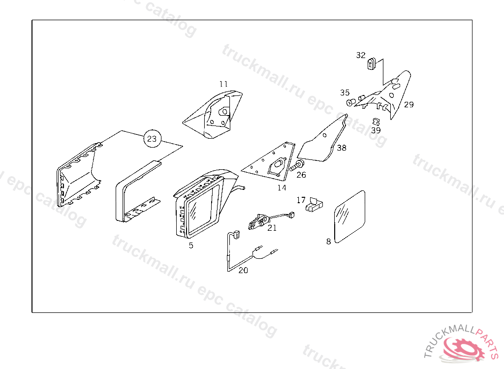 OUTSIDE REARVIEW MIRROR LESS SHELL, MIRROR GLASS PLANE & HEATED,ELECTRICALLY ADJUSTABLE,RIGHT, B 859137 J 003393