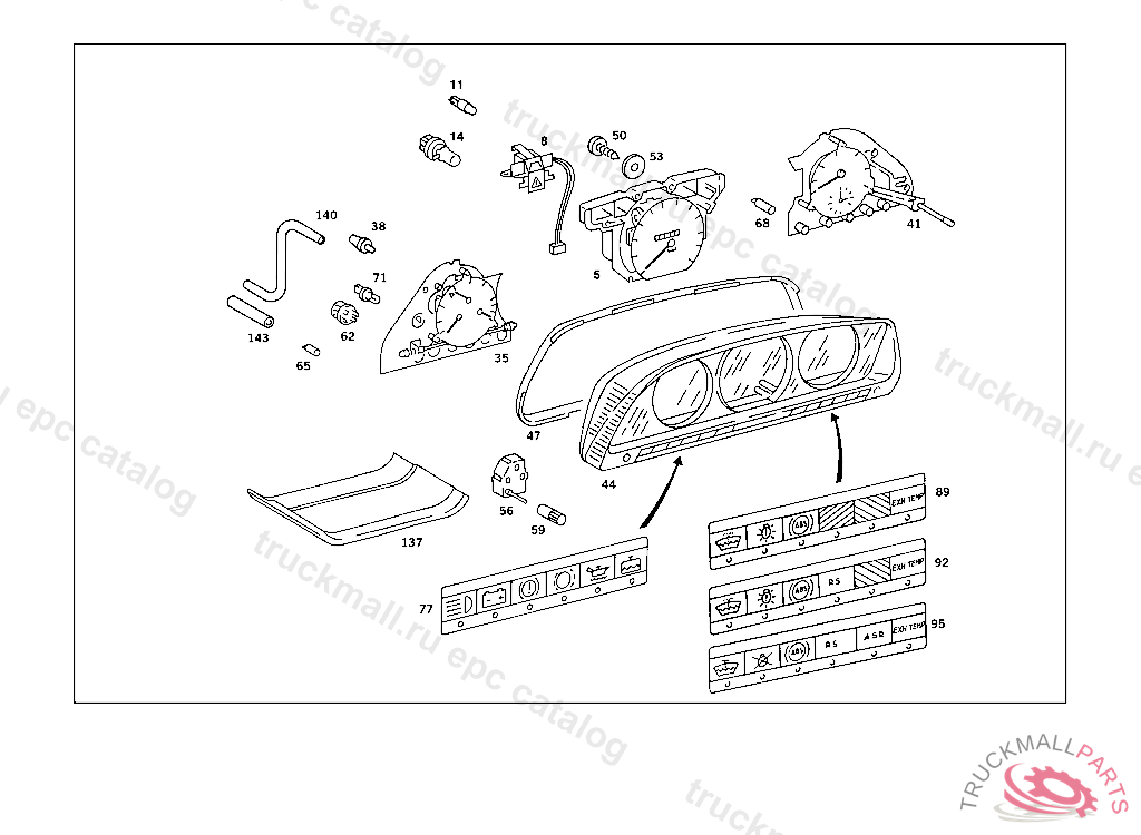 INSTRUMENT CLUSTER , FIRST EXHAUST STOCK OF OLD PARTS UP TO IDENT NO. A 350464, Replaced By: A0045401547
