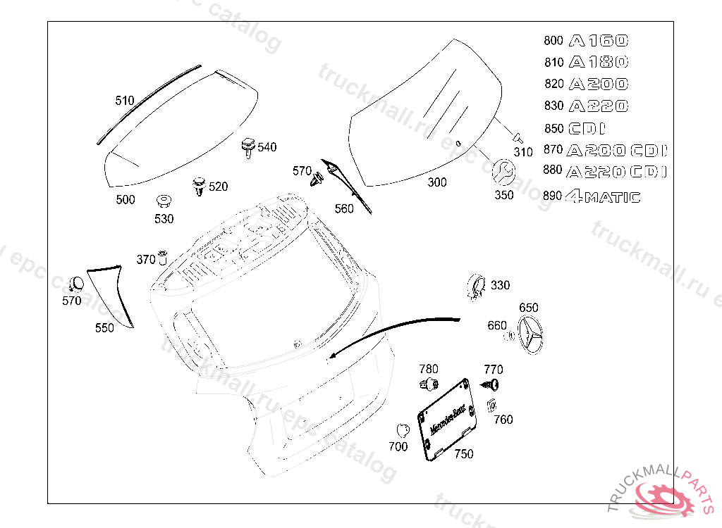REAR WALL WINDOW REAR PANEL DOOR, FIRST EXHAUST STOCK OF OLD PARTS UP TO IDENT NO. J 25136920140212 V 01163920140212, Replaced By: A1767400600