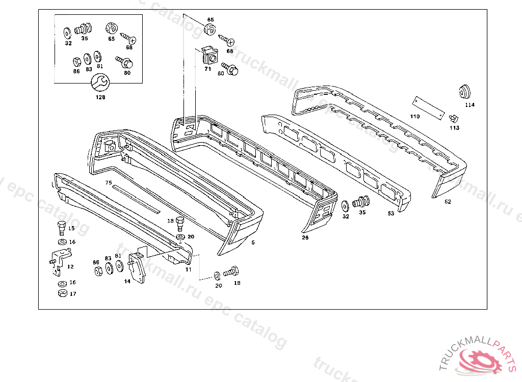 REAR BUMPER FACE BAR WITH COVERING, A 016047 F 000538 024 028680