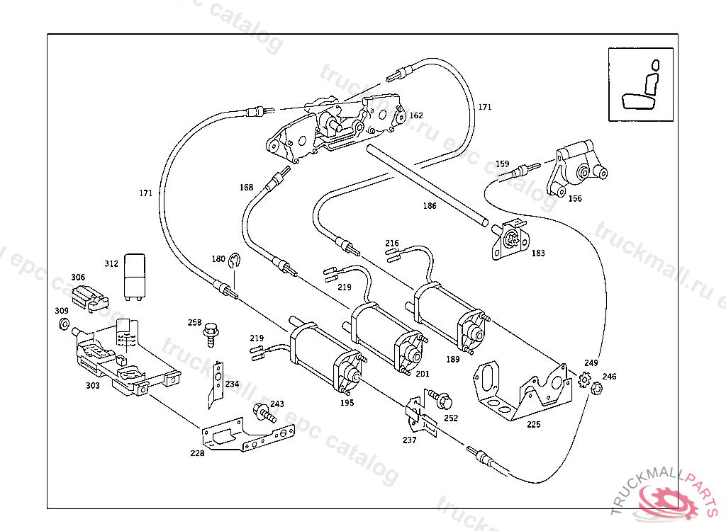 SHAFT , ELECTRIC SEAT ADJUSTER WITH MEMORY FIRST EXHAUST STOCK OF OLD PARTS UP TO IDENT NO. A 318663 F 269585, Replaced By: A1249100398