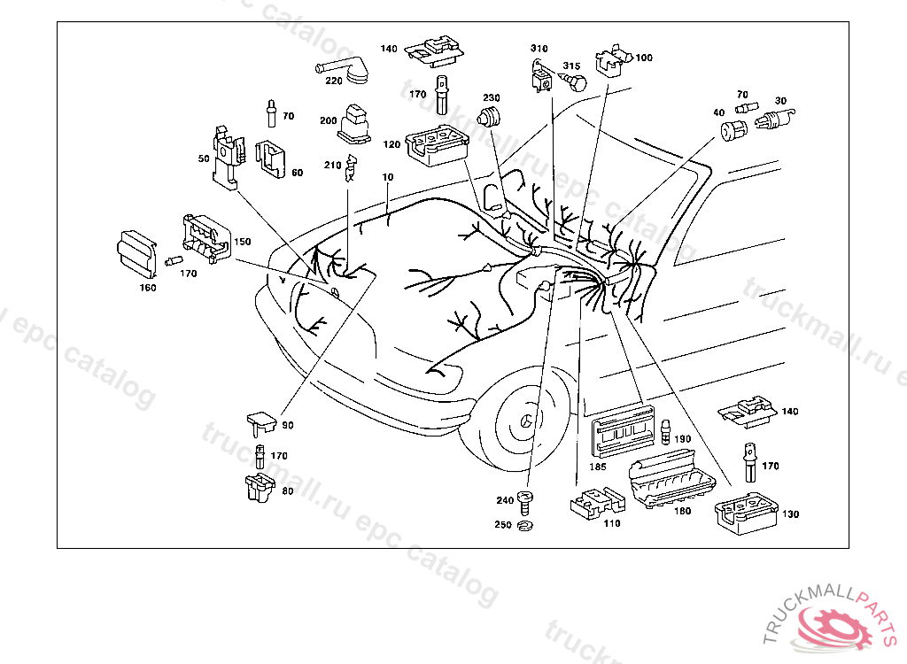 CABLE HARNESS , EXHAUST STOCK OF OLD PART NUMBER FIRST UP TO CHASSIS 126 A 129151, Replaced By: A1265409105