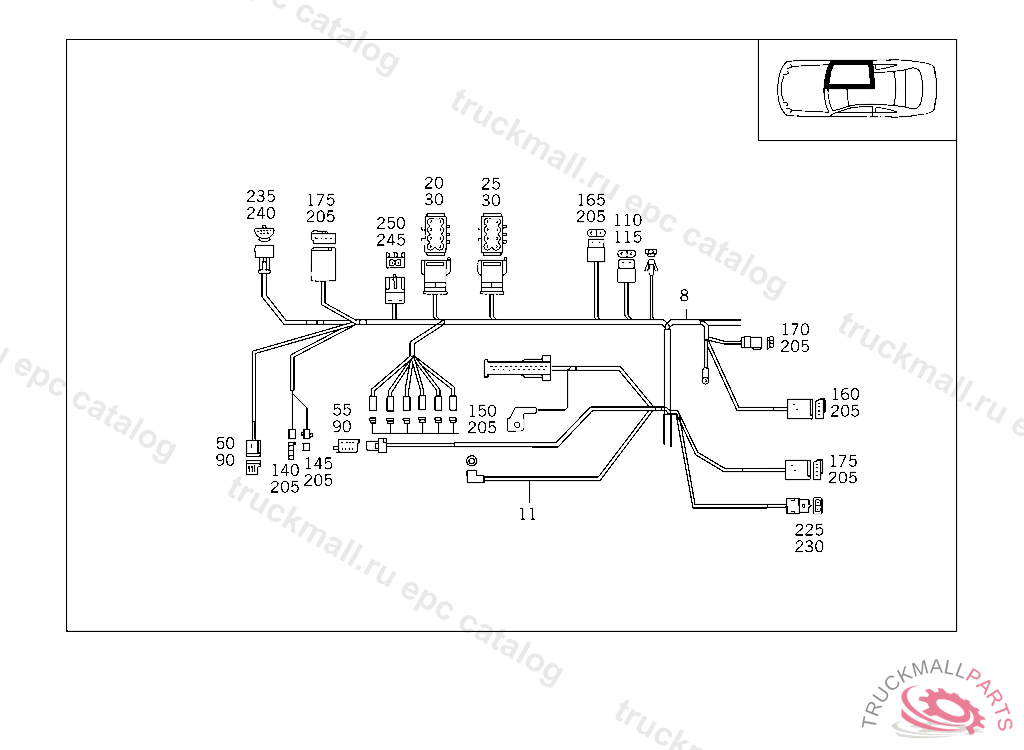 PLUG ENGINE CABLE HARNESS PLUG-CONNECTION TO FRAME MOUNTED CABLE HARNESS, A 698507 X 012425 EXCEPT CODE 809 ALSO INSTALLED IN VEHICLE FROM A 698508, X 012426 WITH CODE 808 EXCEPT A 654636, A 704016