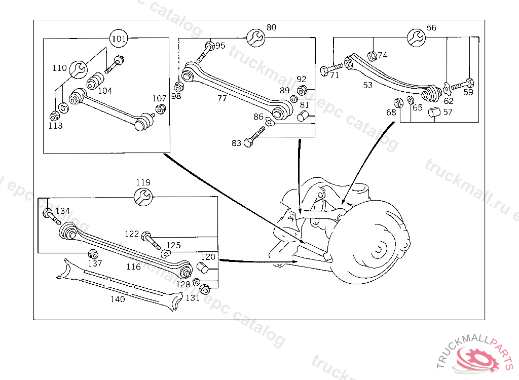 THRUST ARM , UP UNTIL BOLTED CONNECTIONS ON WHEEL CARRIER,THRUST ARM,CAMBER ARM AND RADIUS ROD WERE STANDARDIZED FROM M10 TO M12, Replaced By: A2103503806, +001A2103504506, +001A2103520043