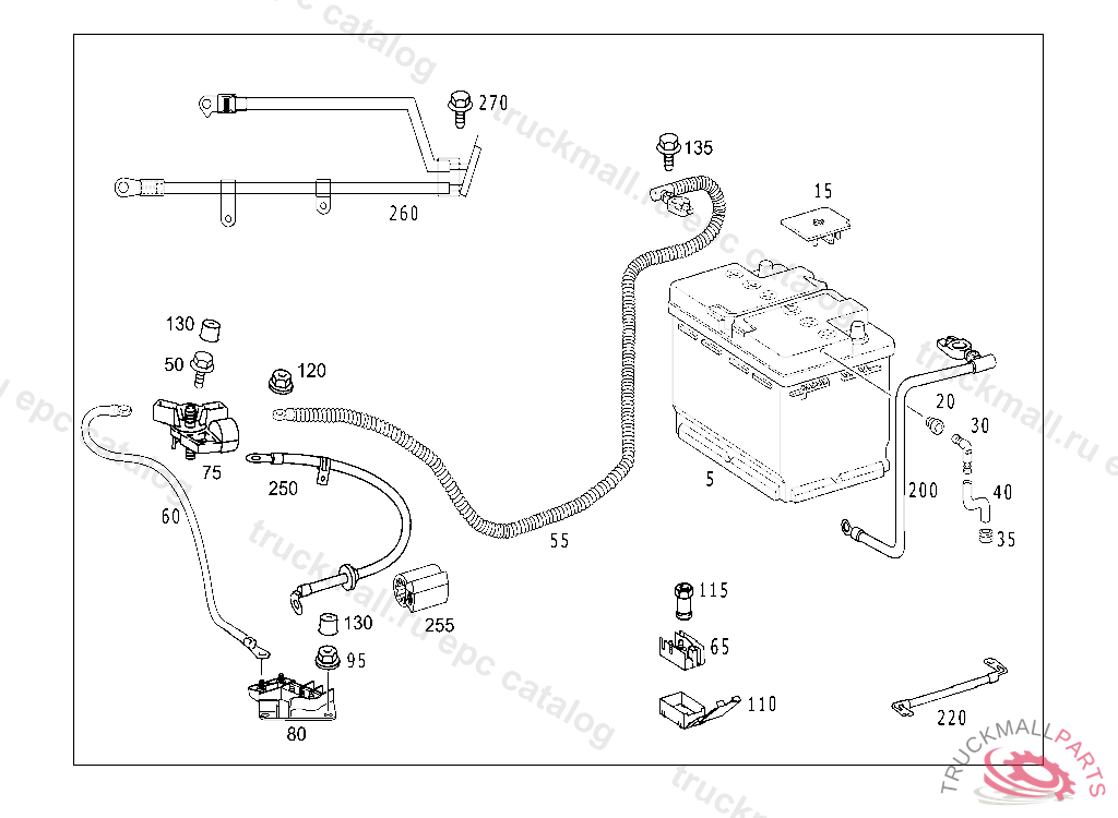POS.CABLE BATTERY TO STARTER AND ALTERNATOR, B 07542319991217 X 02769819990629