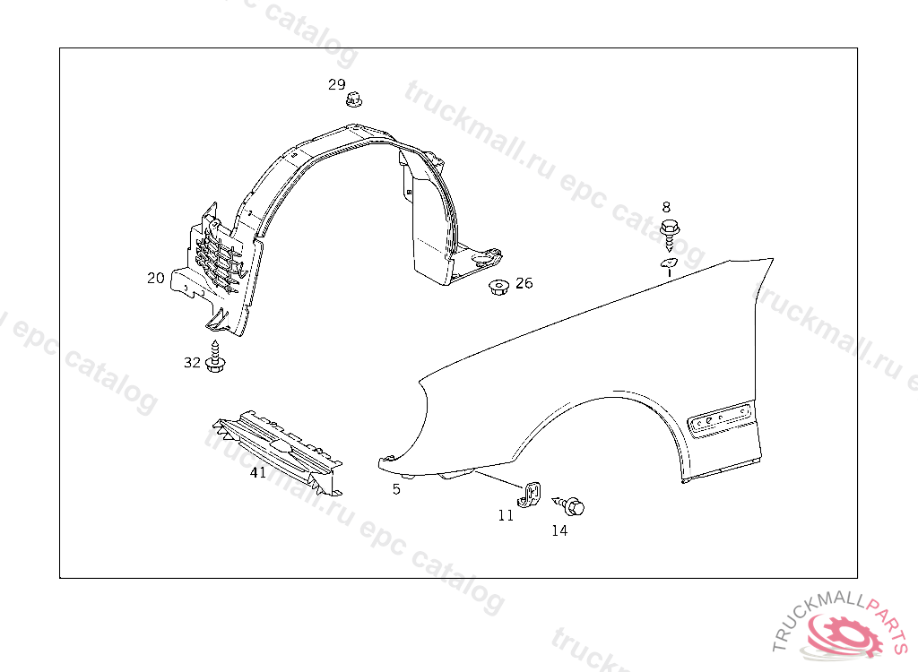 COVERING BETWEEN WHEELHOUSE & RIGHT FRONT FENDER,A 000580, J 000152, Replaced By: A2106984830
