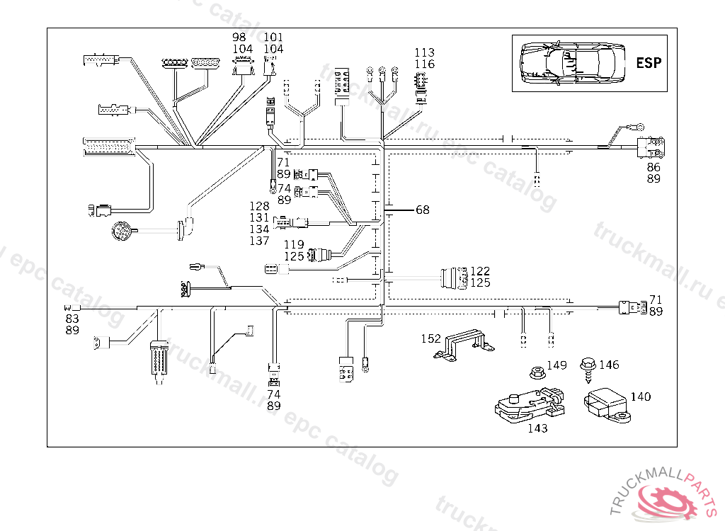 PLUG ENGINE CABLE HARNESS PLUG-CONNECTION TO FRAME MOUNTED CABLE HARNESS, A 698507 X 012425 EXCEPT CODE 809 ALSO INSTALLED IN VEHICLE FROM A 698508, X 012426 WITH CODE 808 EXCEPT A 654636, A 704016