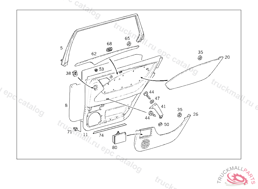 PANELLING REAR DOOR,RIGHT,CENTRE, IN THE CASE OF MB-TEX TRIM,NO.9B50I NO.5B29I NO.8G01I NO.8G06I .......I NO.7D03I
