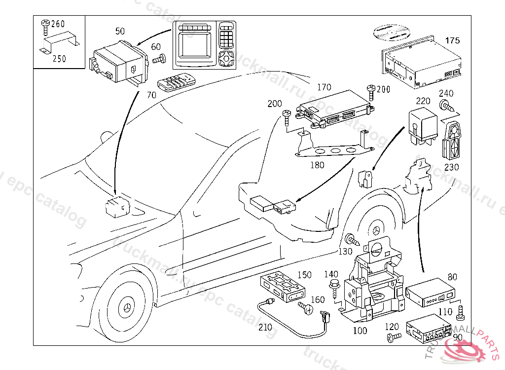 CONTROL UNIT DRIVE FOR NAVIGATION CD, FIRST EXHAUST STOCK OF OLD PARTS UP TO IDENT NO. A 04575220041023 PART IS ONLY OR ALSO SUPPLIED AS RECONDITIONED PART, Replaced By: A2208703589