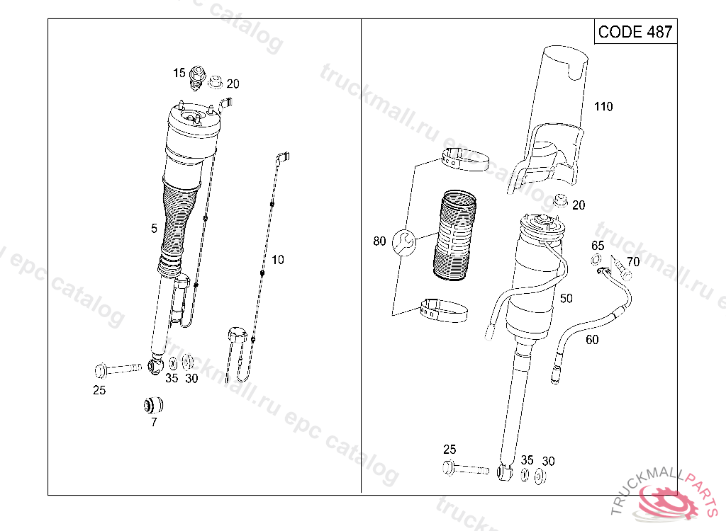 HYDROPNEUMATIC SPRING LEG REAR AXLE,RIGHT, PART IS ONLY OR ALSO SUPPLIED AS RECONDITIONED PART