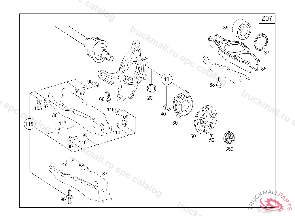 BOLT WHEEL BEARING TO WHEEL CARRIER M10X29, Replaced By: A0019903503