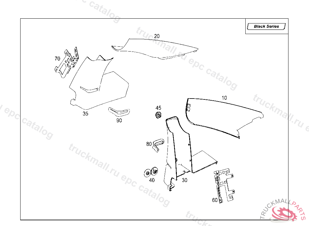 COVER B-PILLAR ON THE LEFT, 9E38 531A QFT230A0225 BLACK