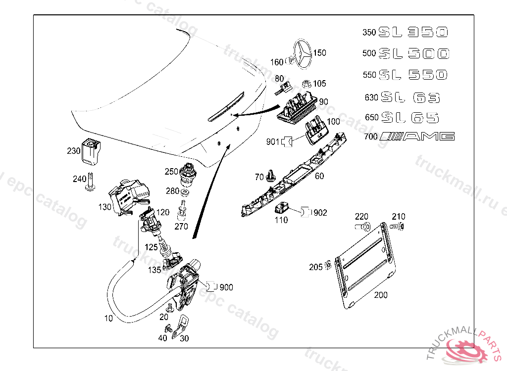 7. 030 REAR LID LATCH-TYPE LOCK, REAR LID ATTACHMENT PARTS