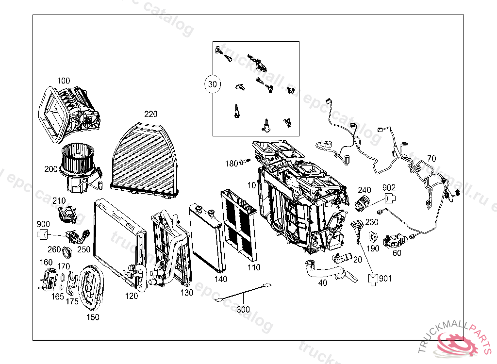 7. 035 HEATER AND EVAPORATOR HOUSING WITH BLOWER AND WIRING HARNESS