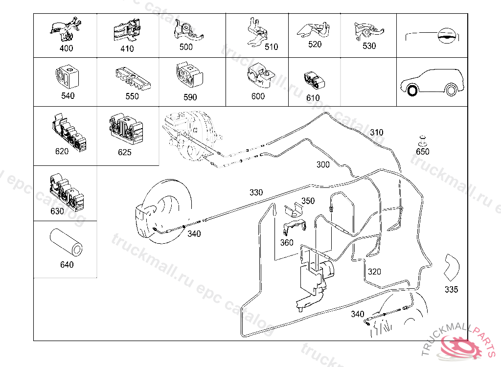 LINE HOLDER FASTENING, RIGHT FRONT WHEEL BRAKELINEAT FIREWALL, Replaced By: A0029951577