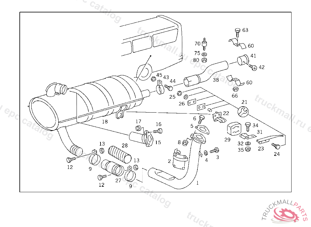 CONNECTOR FRONT EXHAUST PIPE TO MUFFLER, FOR USE WITH MERCEDES-BENZ BODY UP TO IDENT NO.039438, FOR VEHICLES LESS MERCEDES-BENZ BODY UP TO IDENT NO.040793