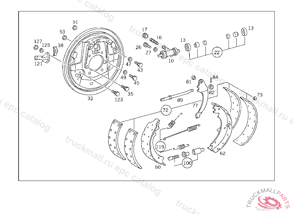 BRAKE SHOE REAR, WITH ASBESTOS-FREE LINING HAVING A THICKNESS OF: 10.50 MM,180280180281 SEE UNIT MICROFICHE,MODEL: 741.0
