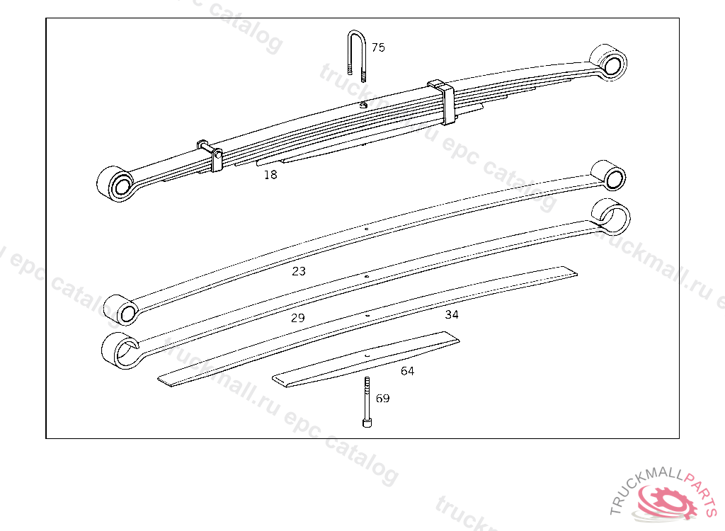 REAR SPRING 9-LEAF,020121 UP TO IDENT NO. 303764 ALSO INSTALLED ON 305535,305722,306215,306634,306638,306642,306675,306699,306707,306709,306713.