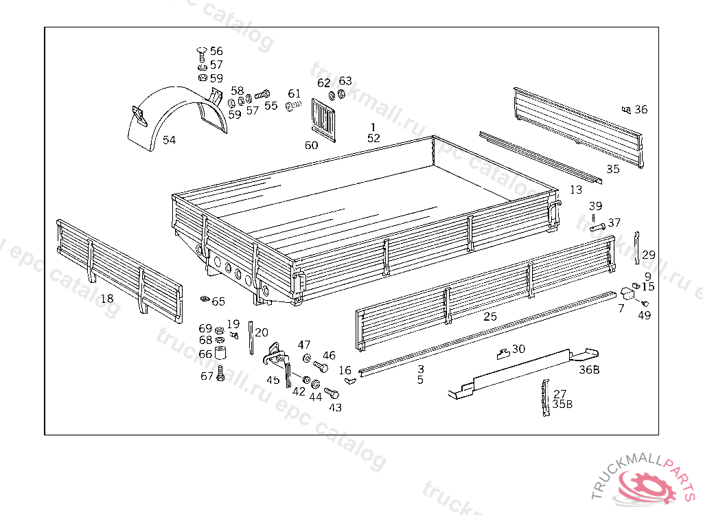 PLATFORM , EXHAUST STOCK OF OLD PARTS NUMBER FIRST UP TO CHASSIS 303411 VEHICLES TARPAULIN FRAME ARE TO BE REWORKED, Replaced By: A3096001821