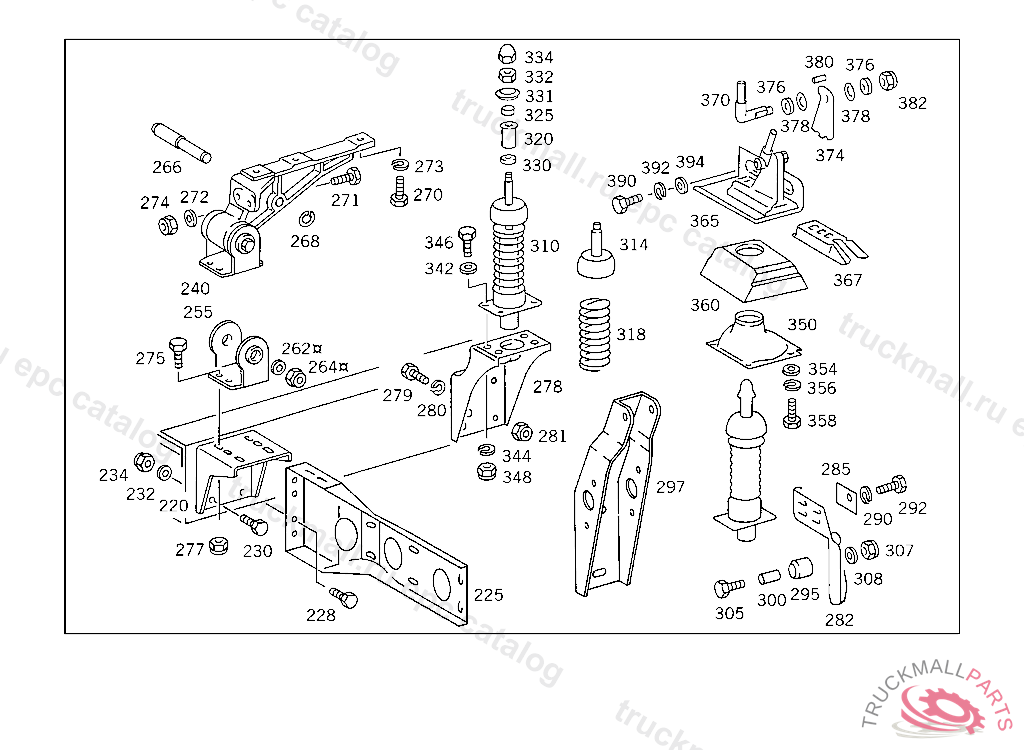 CONSOLE VIBRATION ABSORBER TO FRAME, 385.068,069 ON VEHICLES WITH DB CAB ONLY 385.019 FOR USE WITH SHORT MERCEDES-BENZ CAB5 204965