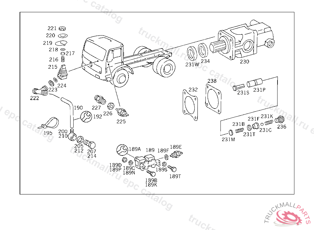 COVERING GEAR-CLUSTER/SHIFT-PATH INTERLOCK, 002,006 FROM CHASSIS 4 263014, 034,134 FROM CHASSIS 4 276784 714.231 UP TO TRANSMISSION 001680,714.301 UP TO TRANSMISSION 000922,FROM TRANSMISSION SEE MICROFICHE,MODEL 714.2 OR 714.3