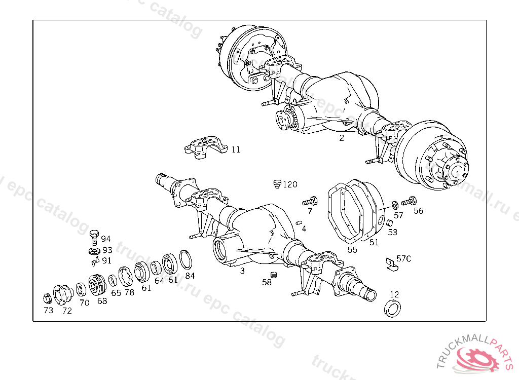 REAR AXLE WITH BRAKES,RATIO: 45:7, UP TO IDENT NO.180280,FROM IDENT NO.180281,SEE UNIT MICROFICHE,MODEL:741.0