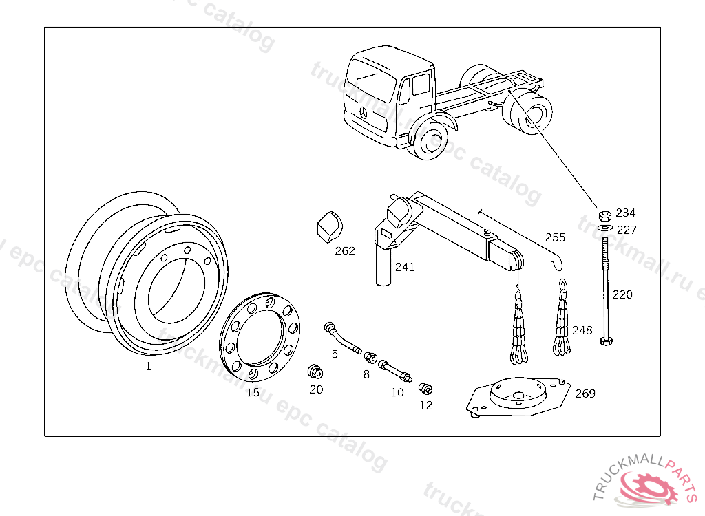 CHAIN SPARE WHEEL HOIST, FOR USE WITH MERCEDES-BENZ BODY