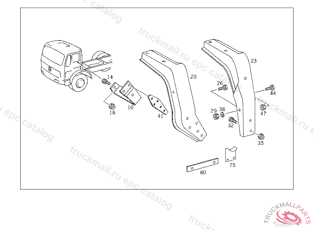 BRACKET DE-AERATION LINE TO CAB SUSPENSION CONNECTING RAIL, 415 5 014668 416 5 000515 417 4 972023 FOR USE WITH MEDIUM-LENGTH MERCEDES-BENZ CAB