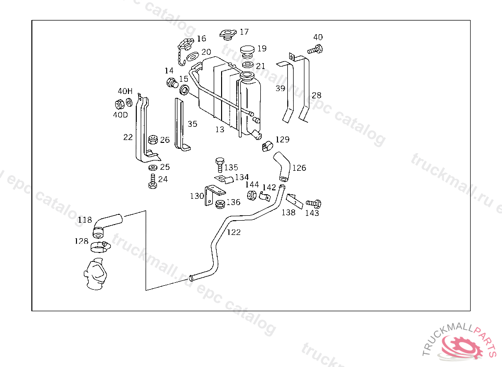 HOSE FROM WATER PUMP TO EXPANSION TANK, 415 5 014668 416 5 000515 417 4 972023 FOR USE WITH SHORT MERCEDES-BENZ CAB