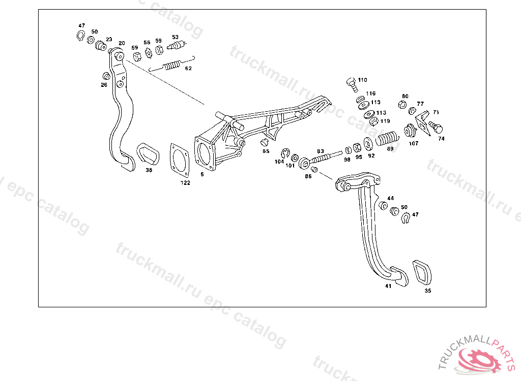 PEDAL BRAKE PEDAL, 022 007568 023 013674 024 028398 026 001238 042 006762 043 014821 044 058449