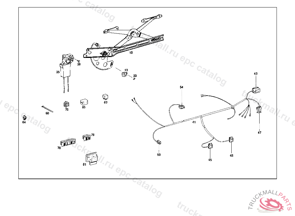 ELECTRIC CABLE FRONT-DOOR/REAR-SIDE WINDOW REGULATORS, FROM CHASSIS: 107.022 004114, EXCEPT FOR: 004115,004130. 107.023 011971, EXCEPT FOR: 011972,011974,011975,011978. 107.024 019072, EXCEPT FOR: 019073-019075,019080,019082,019083,019086,019087,019095,019112,019159. 107.042 003213 107.043 013156 107.044 042316, EXCEPT FOR: 042317,042322,042328,042361,042371,042372,042453.