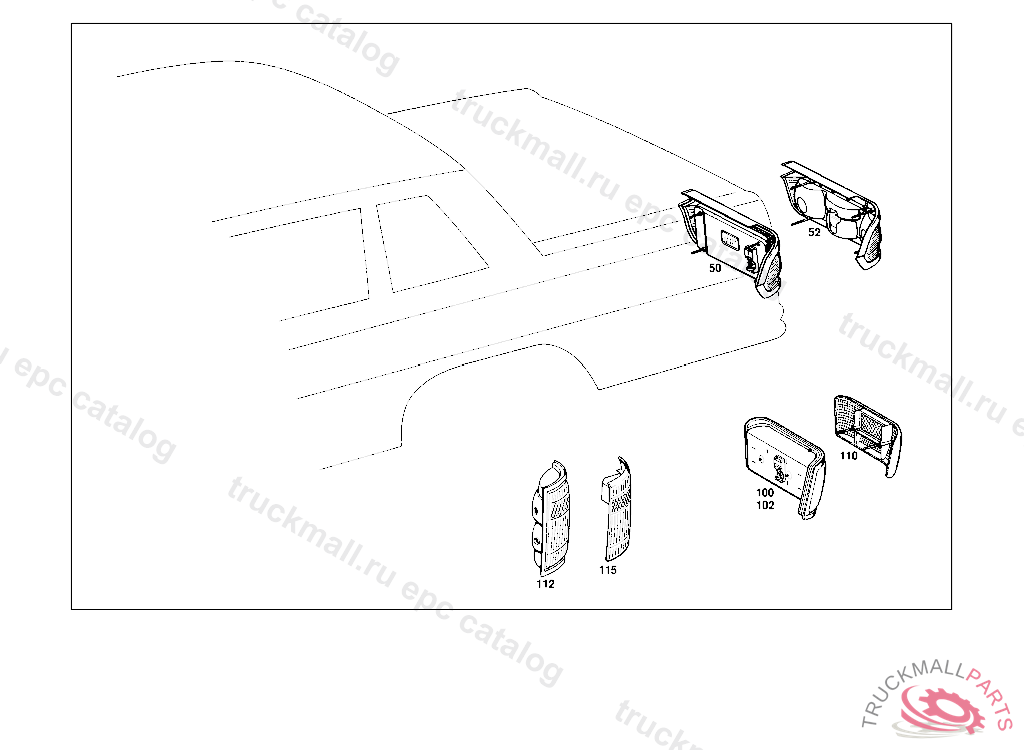 TAIL LAMP RIGHT, UP TO CHASSIS: 111.024,025 003606 111.021,023 UNTIL PRODUCTION STOP