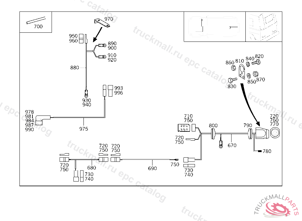 CABLE HARNESS 13-POLE TRAILER PLUG SOCKET 760 MM