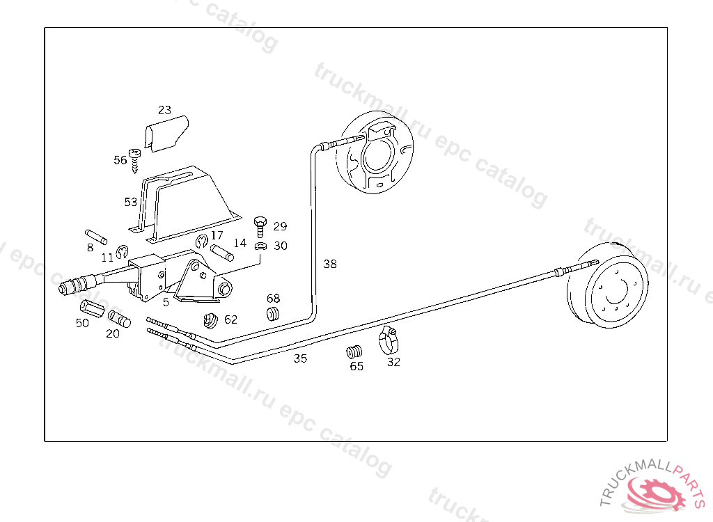 BRAKE CABLE RIGHT DB,1960 MM, FROM AXLE K 005108