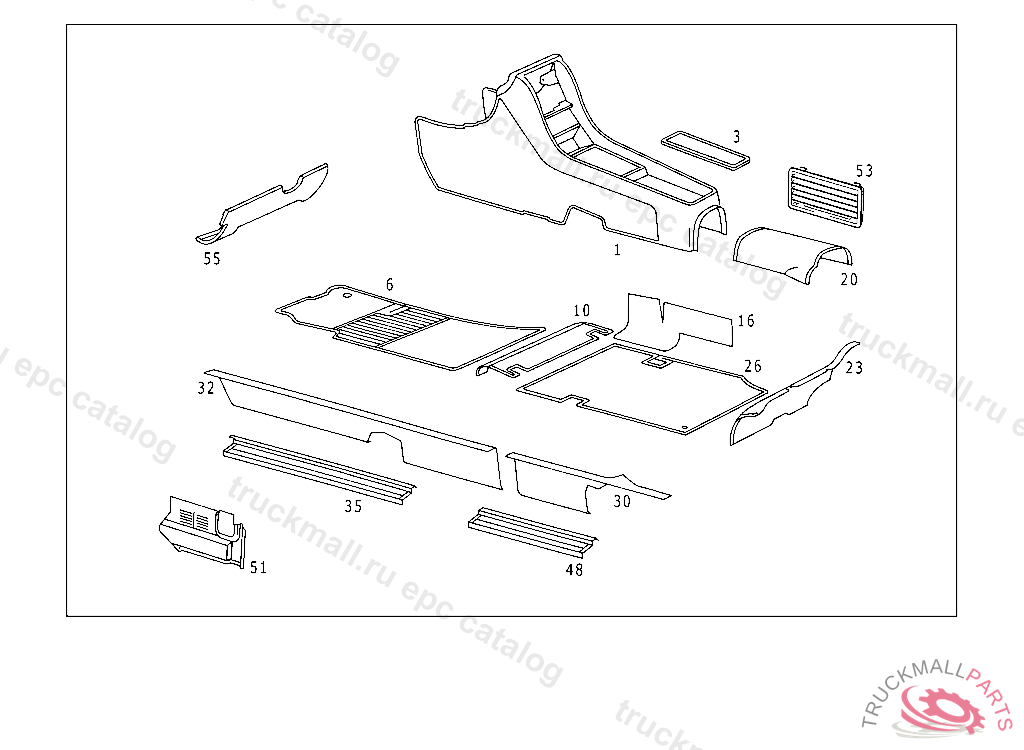 LINING FRONT FLOOR,LEFT, 116.020 UP TO CHASSIS 074322,116.024,025 UP TO CHASSIS 070431,116.028,029 UP TO CHASSIS 036431,116.032 UP TO CHASSIS 057092 DARK GREY NO.7064 CODE 961,BLUE NO.5033 CODE 962,MAGOGANY NO.8153 CODE 963,BEIGE NO.8154 CODE 964,PARCHMENTE NO.8159 CODE 965, OLIVE GREEN NO.6040 CODE 966 DARK ANTRACITE NO.7088,CODE 901,BLUE NO.5061,CODE 902,TOBACCO NO.8288,CODE 903,BAMBOO NO.8289, CODE 904,PARCHMENT NO.8290, CODE 905,MOSS NO.6076,CODE 906