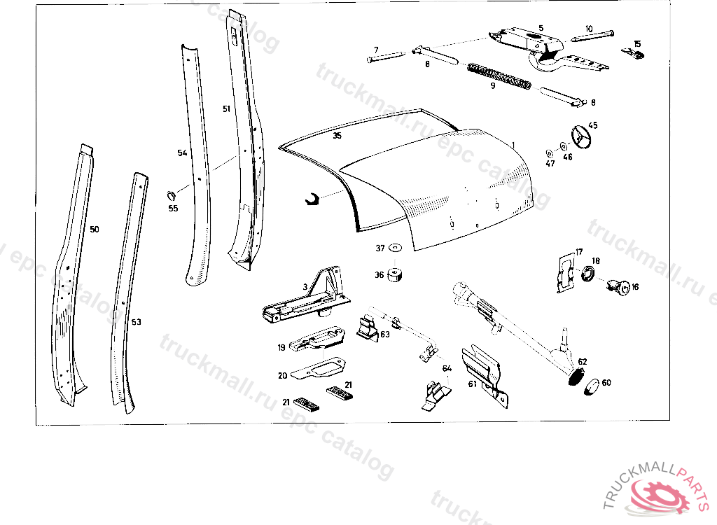 REAR LID SHELL WITHOUT METAL FITTINGS UP TO CHASSIS NO. 45 06123 1 ORNAMENTAL BAR 10 120 885 02 82 3 CLIP 000 988 47 78 1 TEROSTA