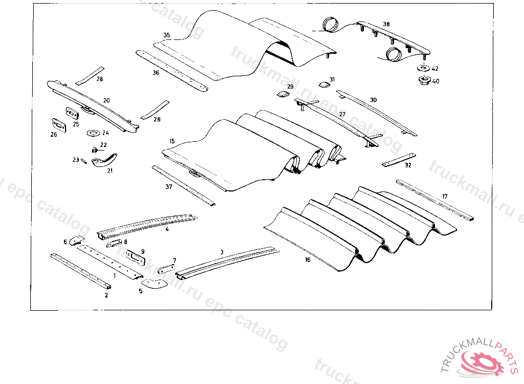 DOME, SEWN. DOME COMPLETELY SEWN, WHEN PLACING ORDERS: COLOR AND CHASSIS NO. SHOULD BE INDICATED