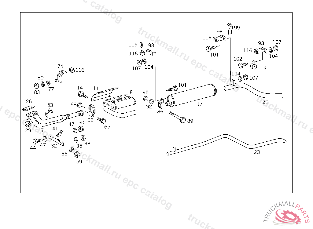 EXHAUST MUFFLER PRE-MUFFLER, FROM IDENT NO. 941506 ALSO INSTALLED ON 899081-941503 ONLY WITH OM601/OM602 ENGINEP 000001 USED FOR EXHAUST SYSTEM WITH PRE-MUFFLER
