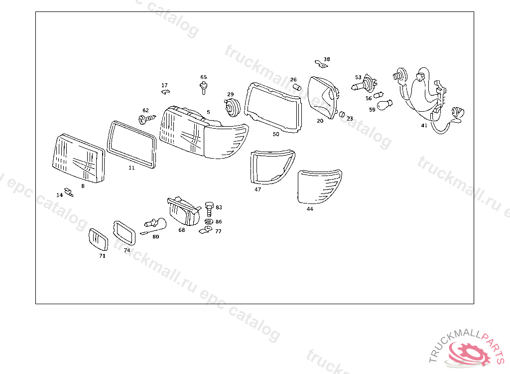 LIGHTING UNIT LEFT,R.H.TRAFFIC, WITH LIGHT RANGE REGULATOR, 022 006289 023 013065 024 025004 026 000535 042 005287 043 014126 044 052476