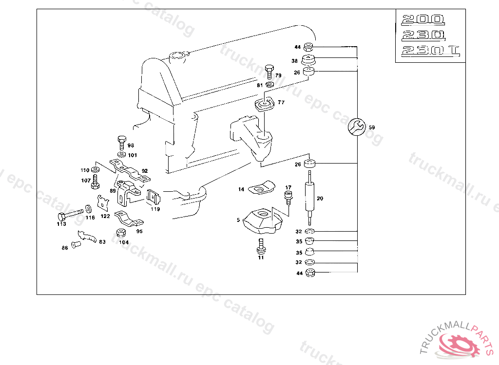 SCREW ENGINE FRONT MOUNTING TO ENGINE SUPPORT, 000 042295 003 019476 102,103 029067 105 038078