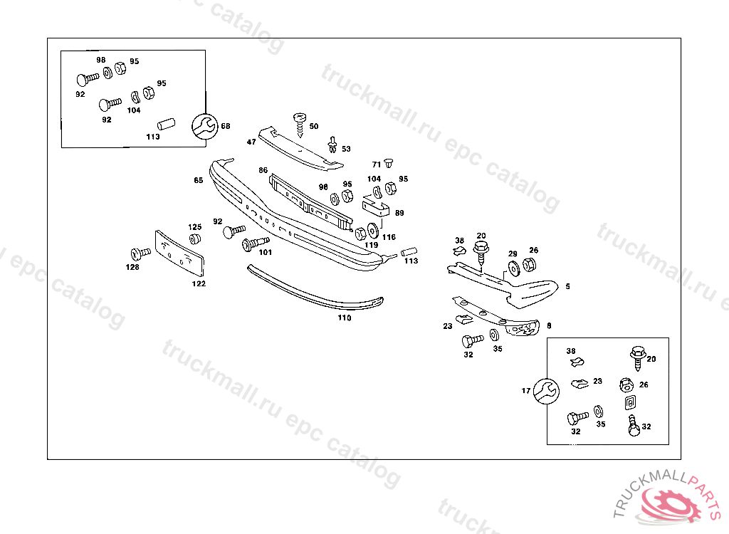 BUMPER JOINT COVER FRONT,BETWEEN BUMPER AND BODY, 003 099459 007 082986 086 006885 093 008450 102,103 219668 105 219920 183 014499 190 021302 193 000281 200 013534 280 000039 283 002732