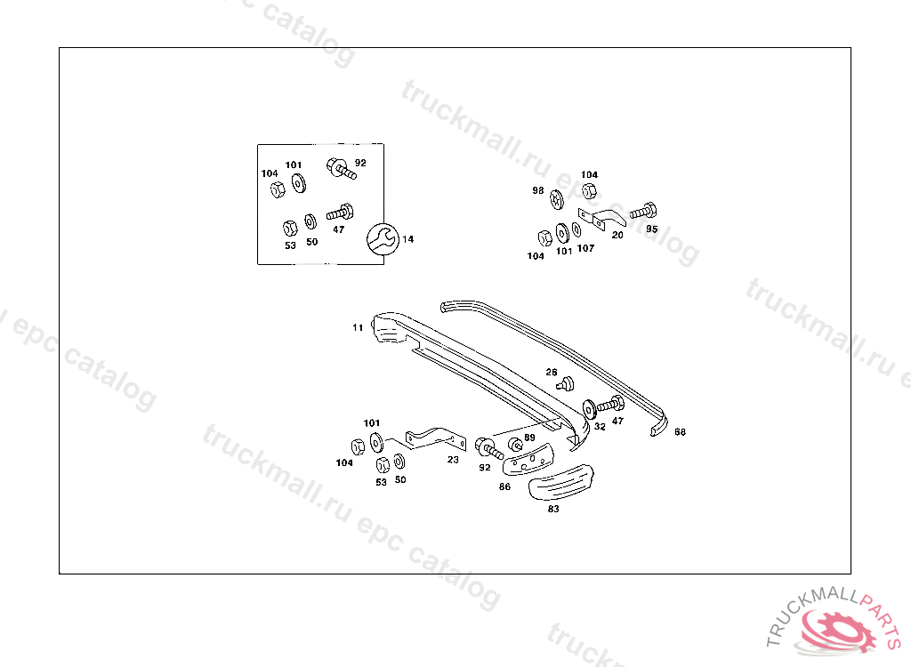 BRACKET RIGHT,REAR BUMPER TO CROSS MEMBER, 000 076113 003 037252 007 034197 102,103 055859 105 070819