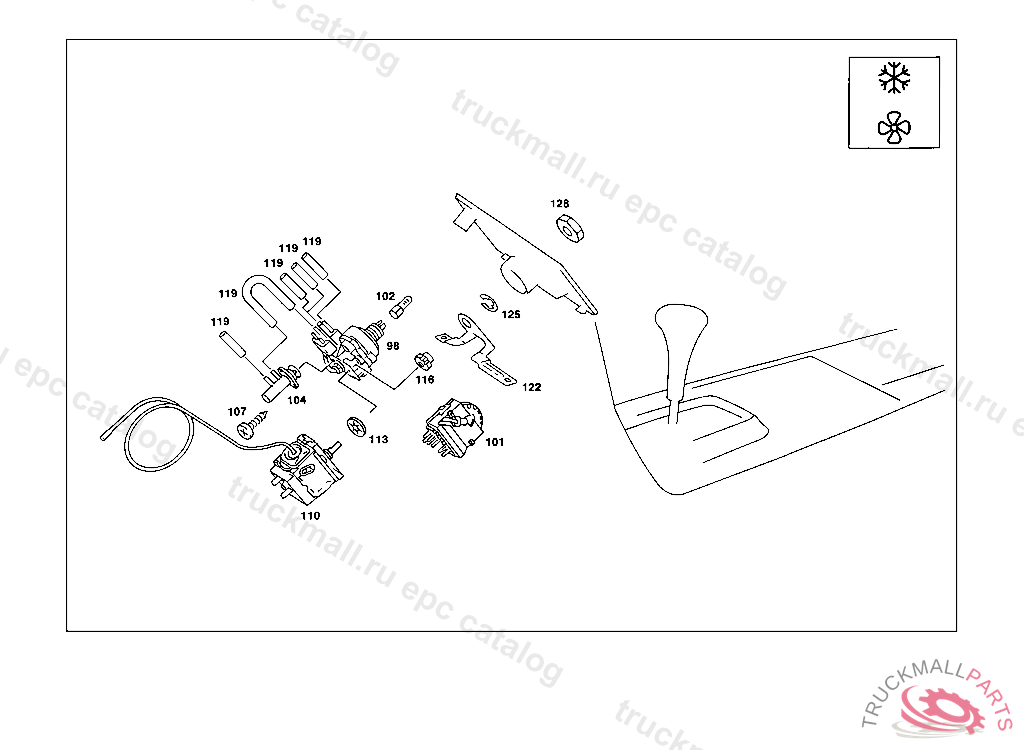 BULB LIGHTING OF LEFT AND RIGHT OPERATING UNITS AND BLOWER SWITCH