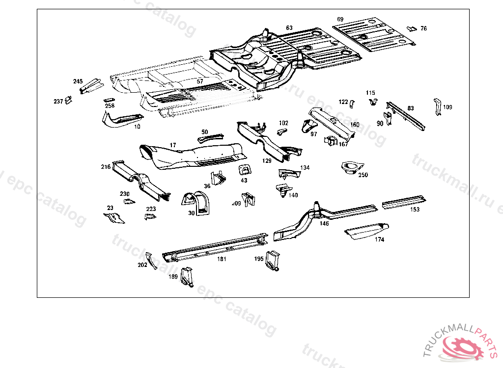 FLOOR RIGHT, 000,001,004,010 UP TO CHASSIS 130557,100,101,104,110 UP TO CHASSIS 225647