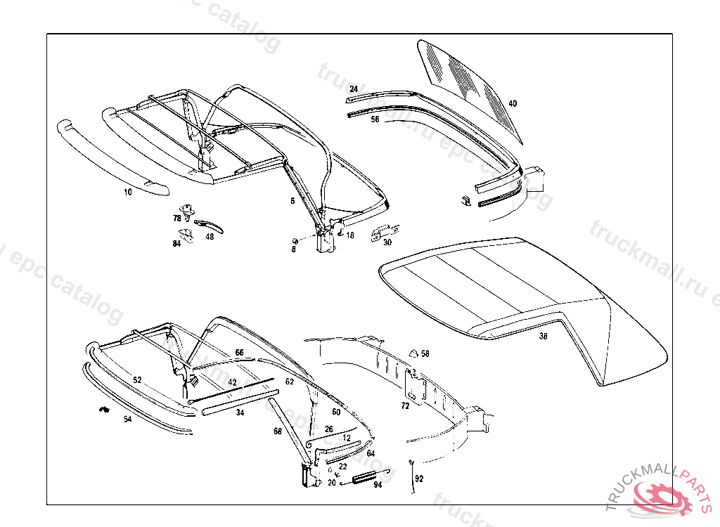 FOLDING TOP TOTAL RANGE OF DELIVERY, FOR SUBSEQUENT CONVERSION FROM COUPE TO ROADSTER, NOT FOR USE WITH REAR SEAT BENCH042 019359 ALSO INSTALLED ON 019020, 019113, 019136, 019138, 019196, 019200, 019202- 019204,019218, 019220, 019222- 019225, 019243, 019244, 019247- 019254, 019258, 019266- 019268, 019271, 019273, 019277, 019280- 019289,019292, 019293, 019295- 019300, 019303- 019305, 019312- 019318, 019320, 019321, 019323- 019328, 019330- 019337, 019342, 019343,019348- 019357
