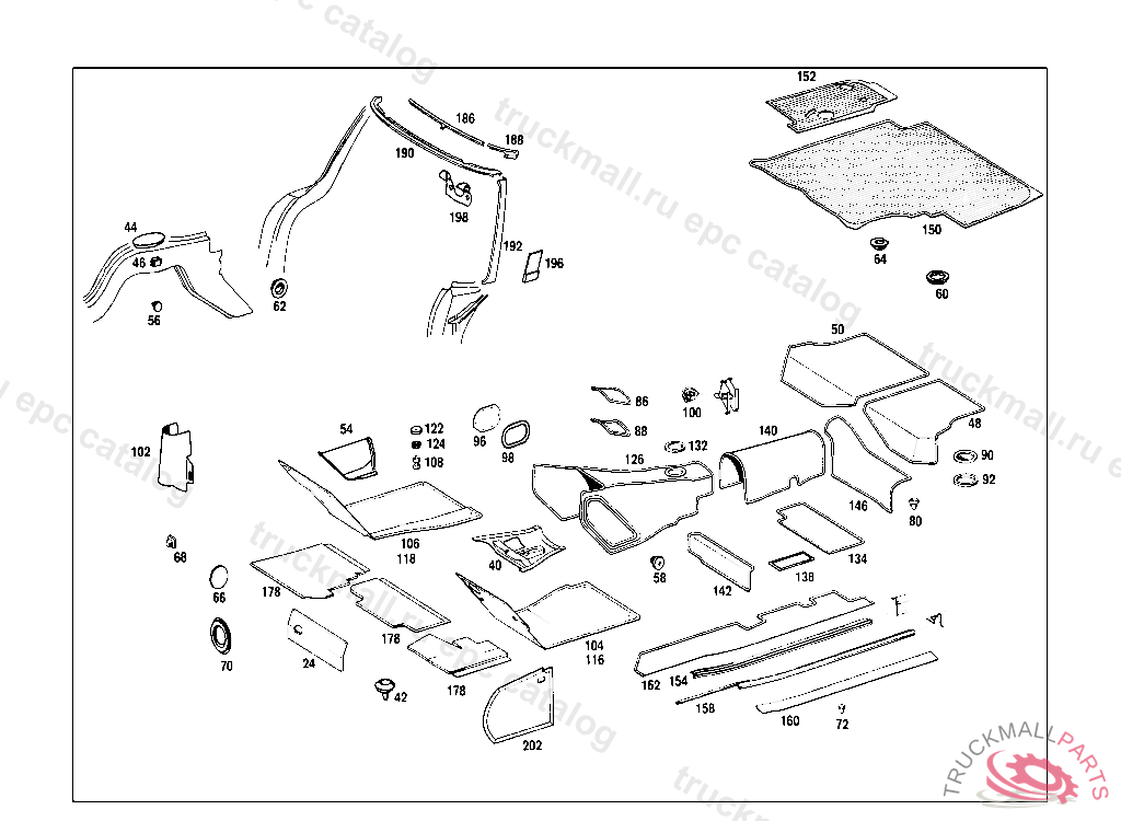 RUBBER MAT LUGGAGE COMPARTMENT, LEFT, 042 007205 ALSO INSTALLED ON006069 EXCEPT FOR:007216, 007232