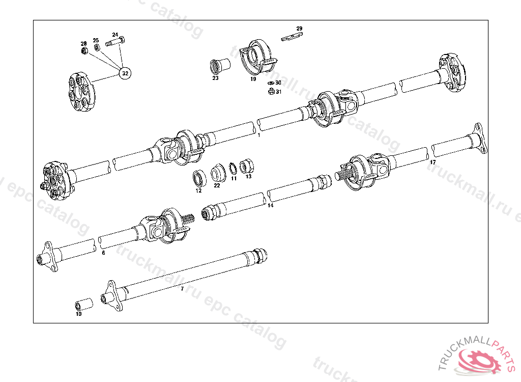 PROPELLER SHAFT FRONT, FROM CHASSIS: 015,115 200001 110 400001 005,017,105,108,117,119 000001