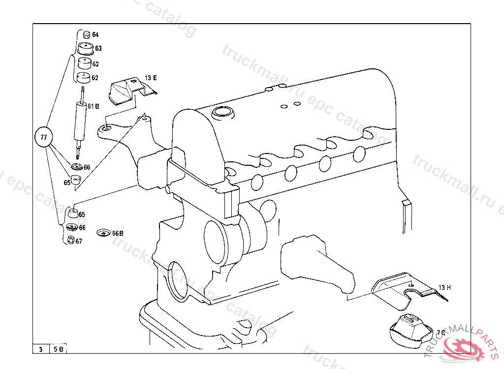 REPAIR KIT ENINE SHOCK ABSORBER MOUNTING PARTS, 026,028 047555 030 022730 033 041004