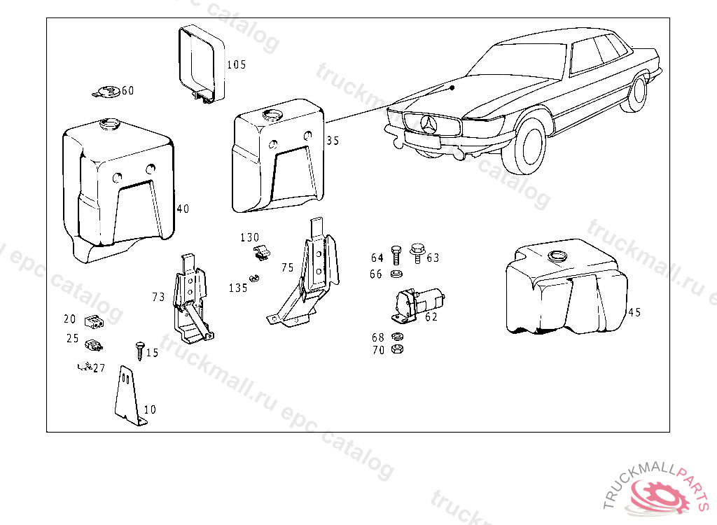 RESERVOIR FRONT RIGHT, UP TO CHASSIS: 107.023 009849 107.024 007849 107.043 011507 107.044 021171, EXCEPT FOR: 021165,021170