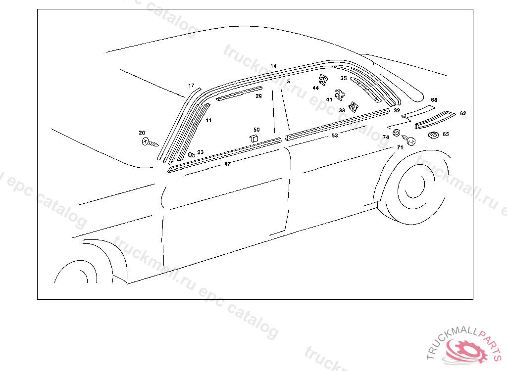 GARNISH MOULDING RIGHT,AT REAR END PILLAR, 023 048083 033 024473 123 033548 130 043492